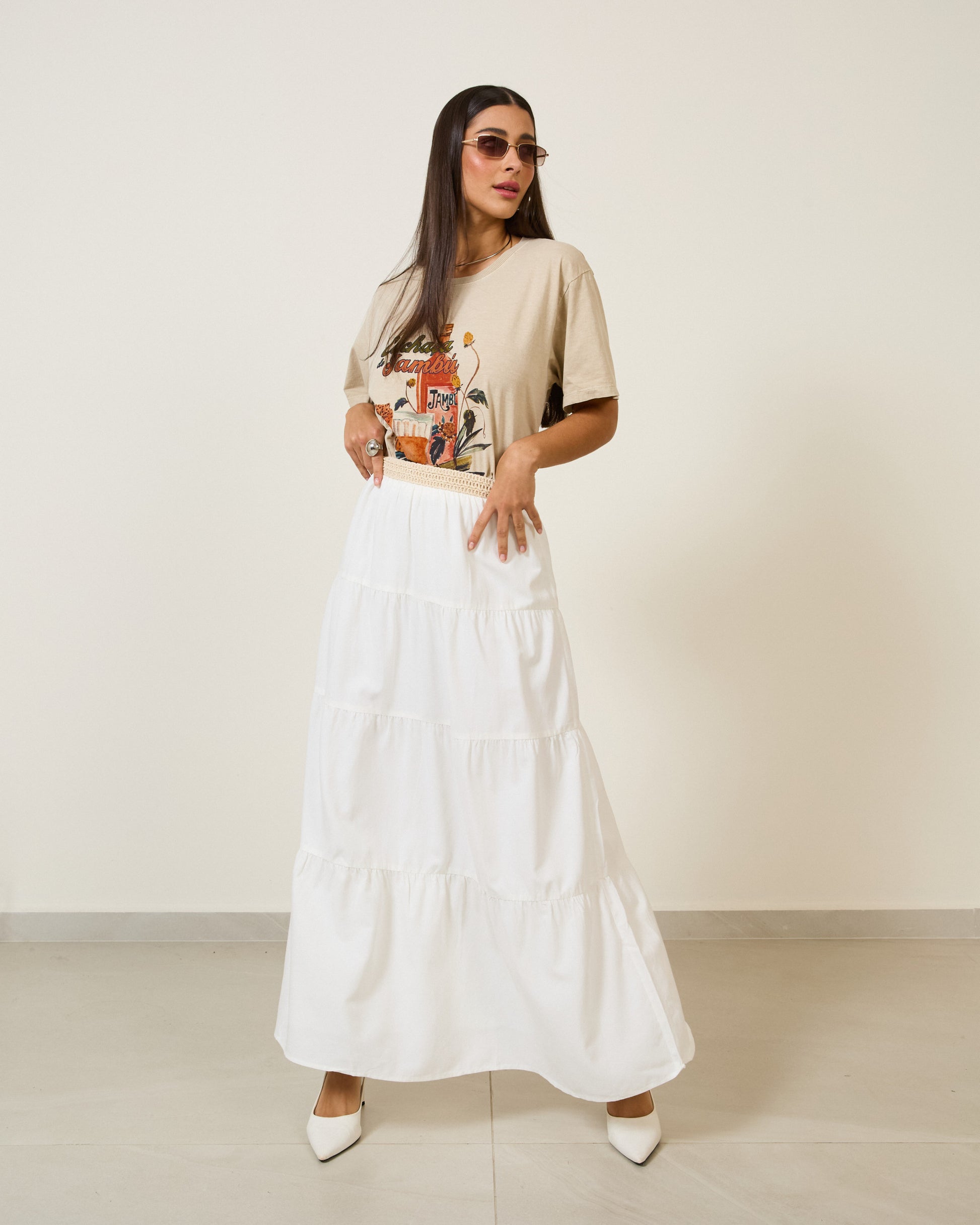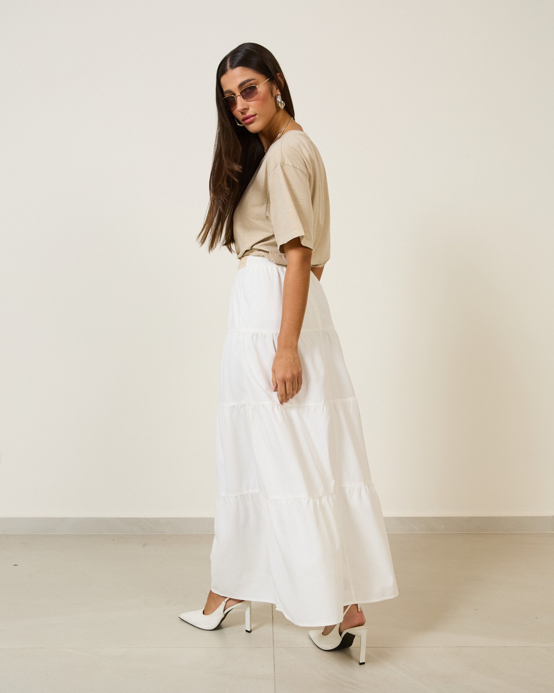 Saia Longa Algodão com Detalhe no Cós WHITE