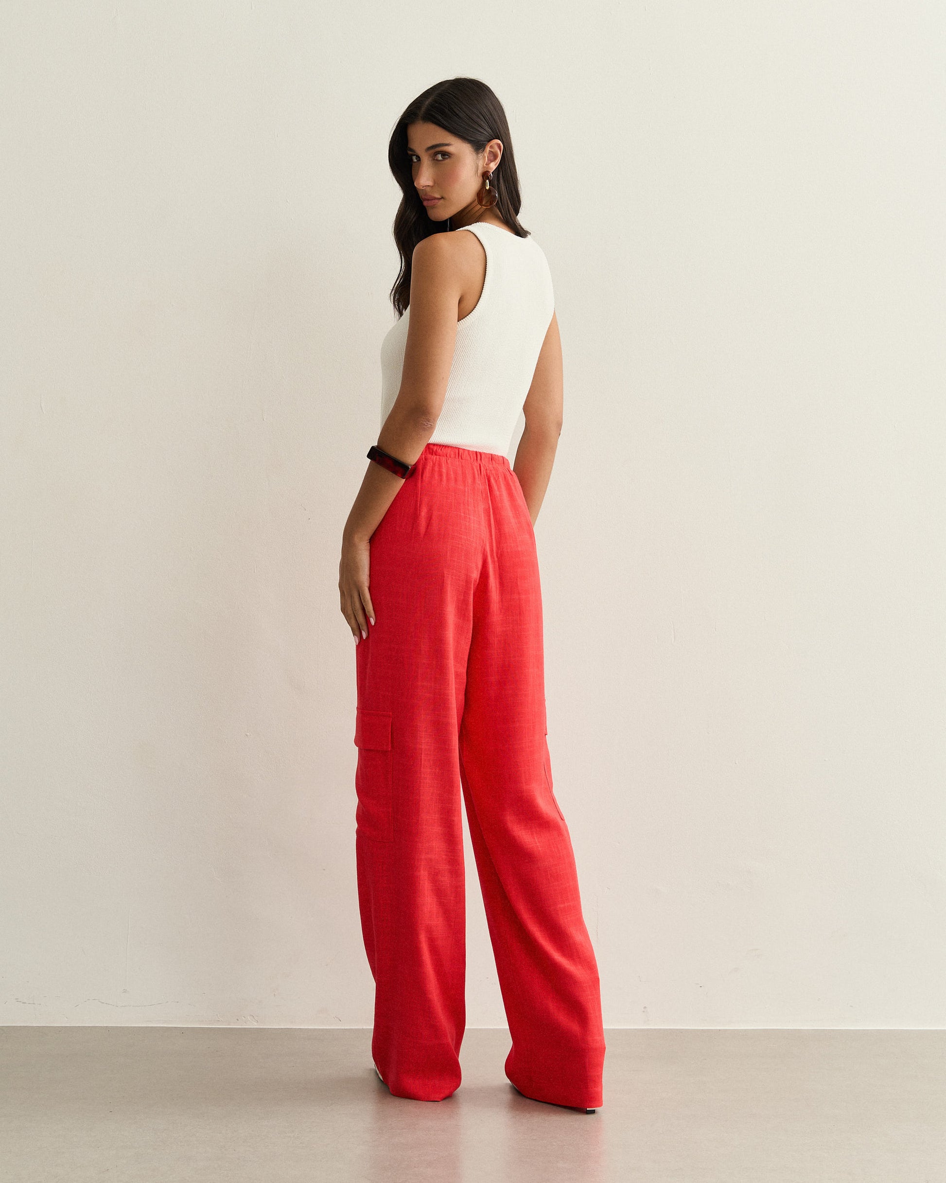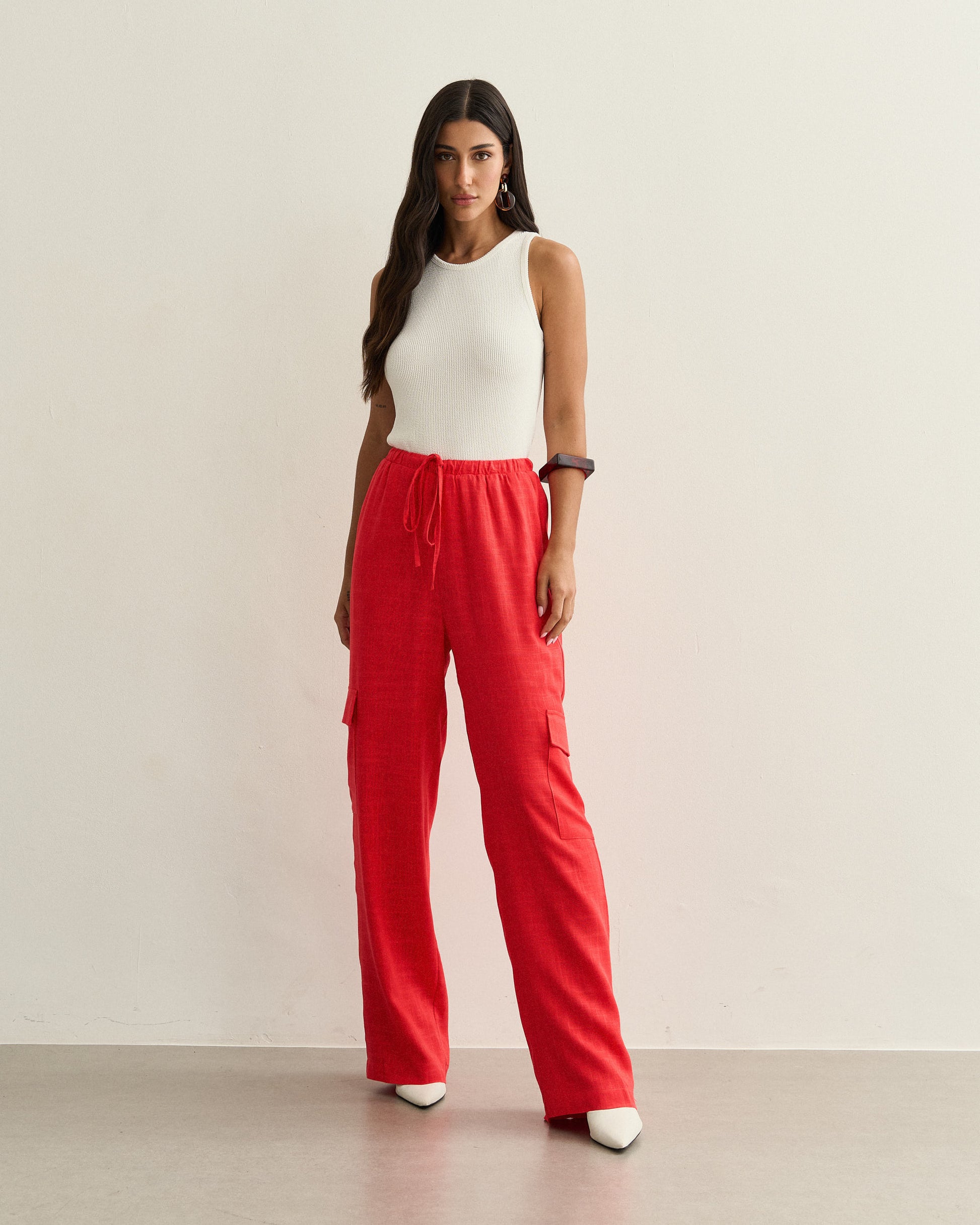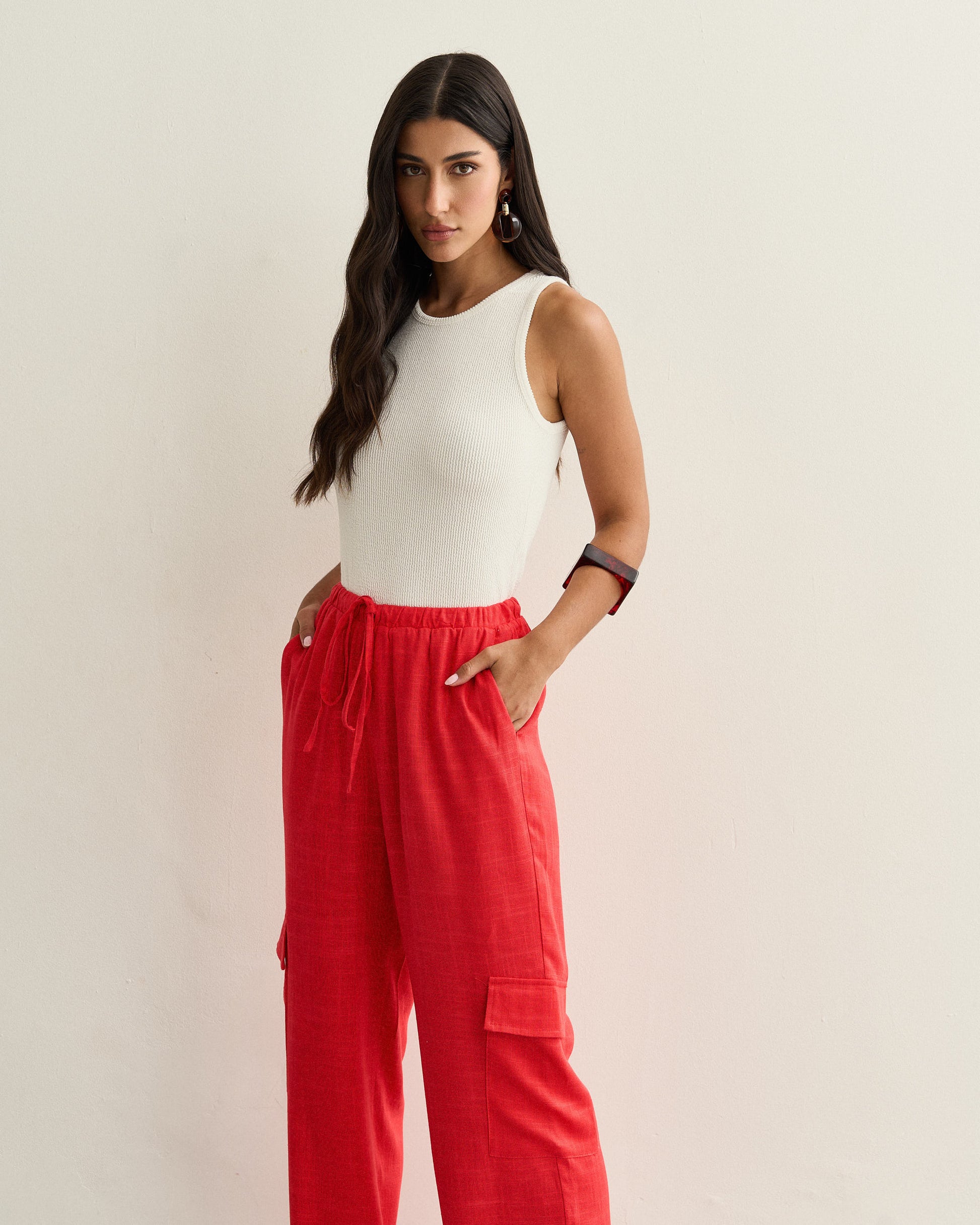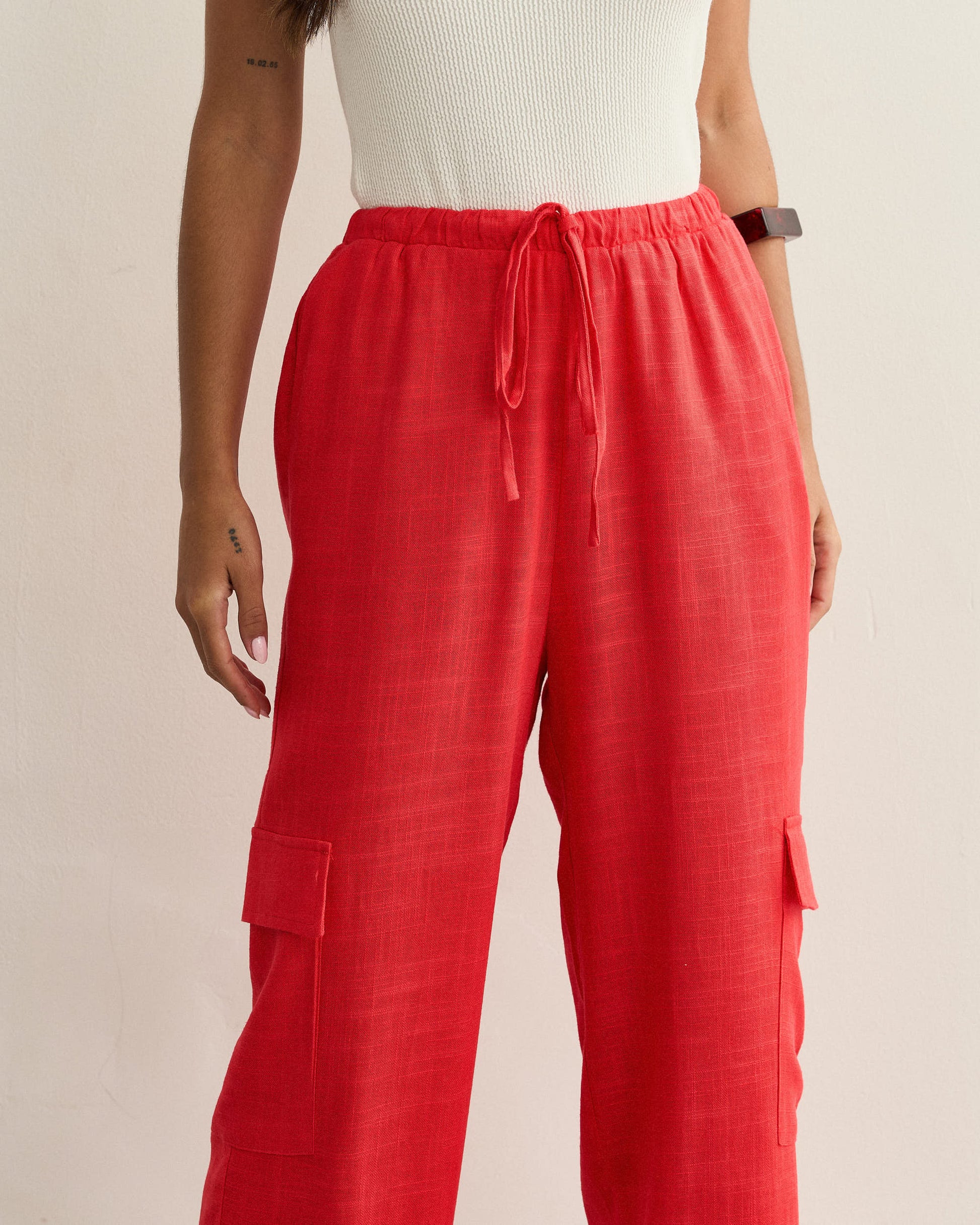 CALCA CARGO LINHO AMARRAÇÃO VERMELHO