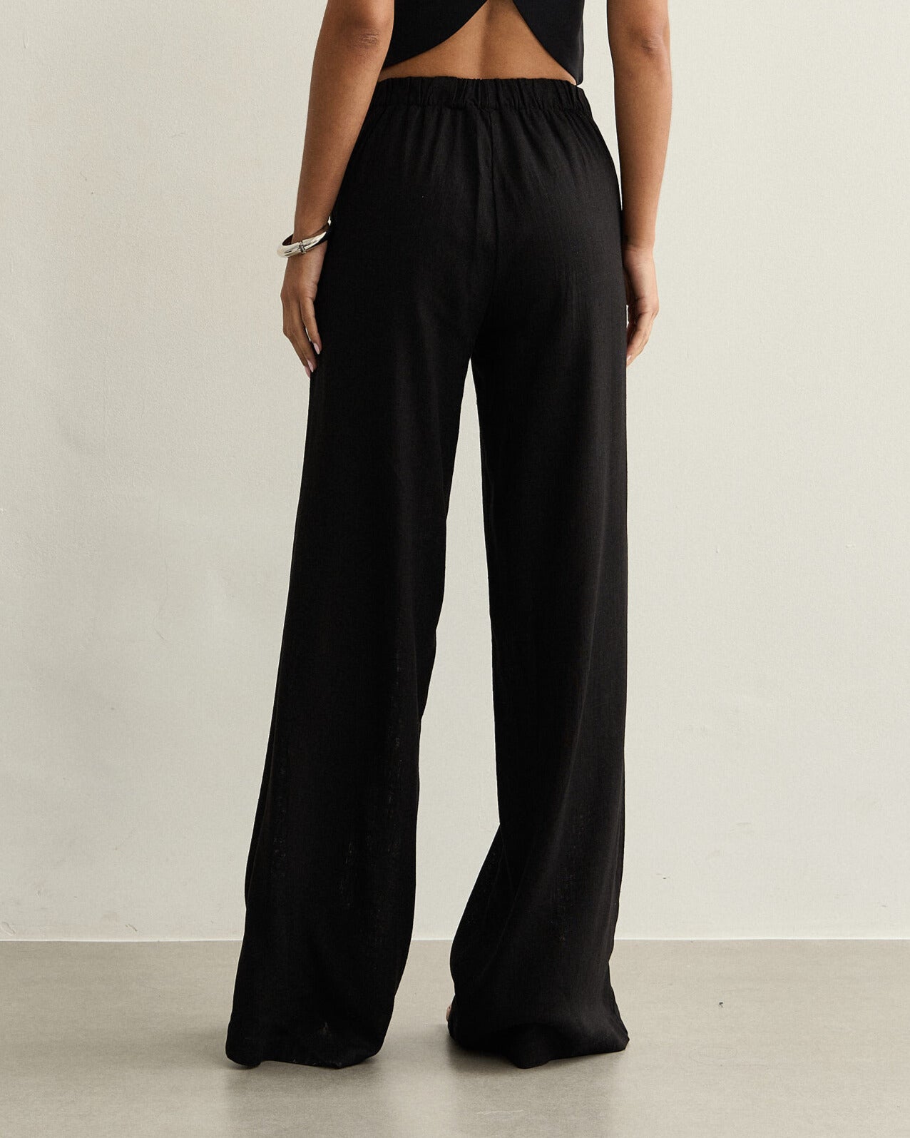 CALÇA COM NERVURAS E ELÁSTICO NAS COSTAS BLACK