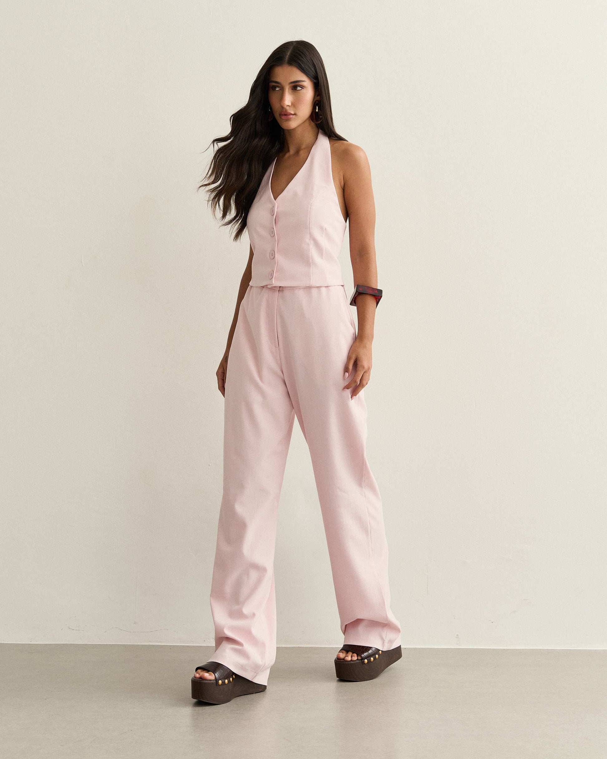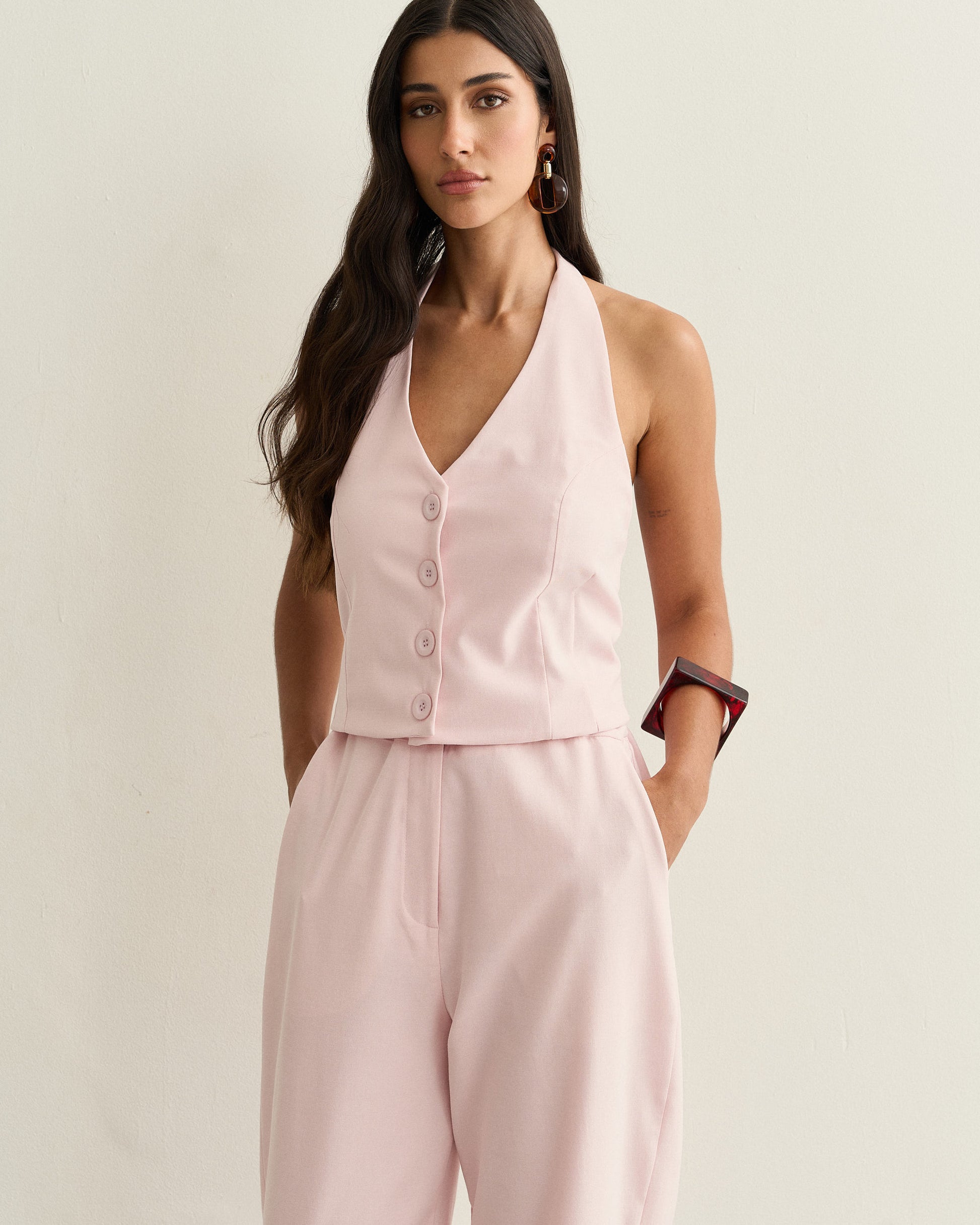 Colete alfaiatado com botões, forro interno e detalhe de lastex nas costas. Ajuste confortável e caimento elegante.