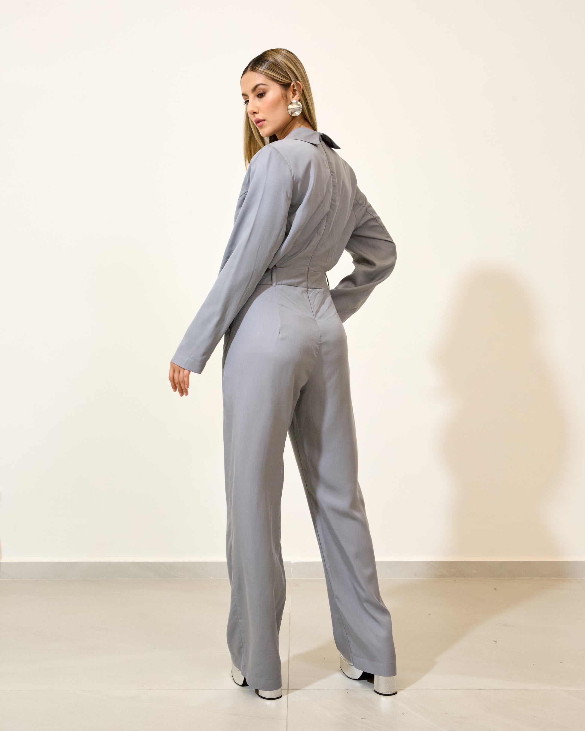 Macacão Transpassado Alfaiatado com Recorte CINZA