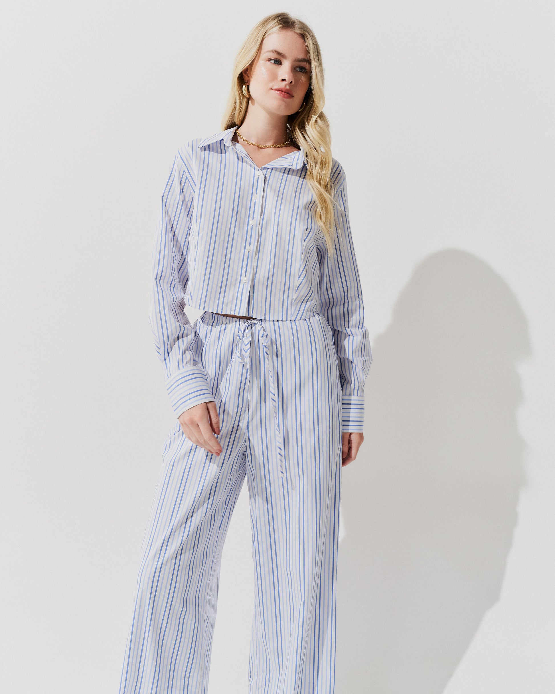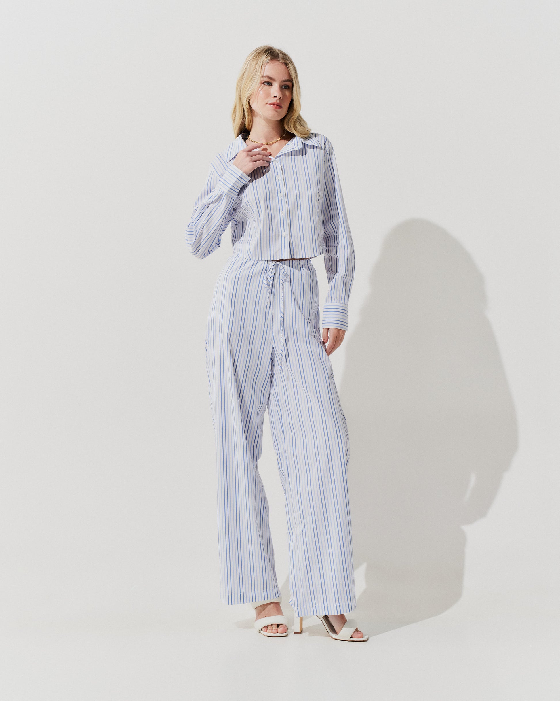 A Calça Listras Cós Fino  é uma peça moderna e sofisticada.
