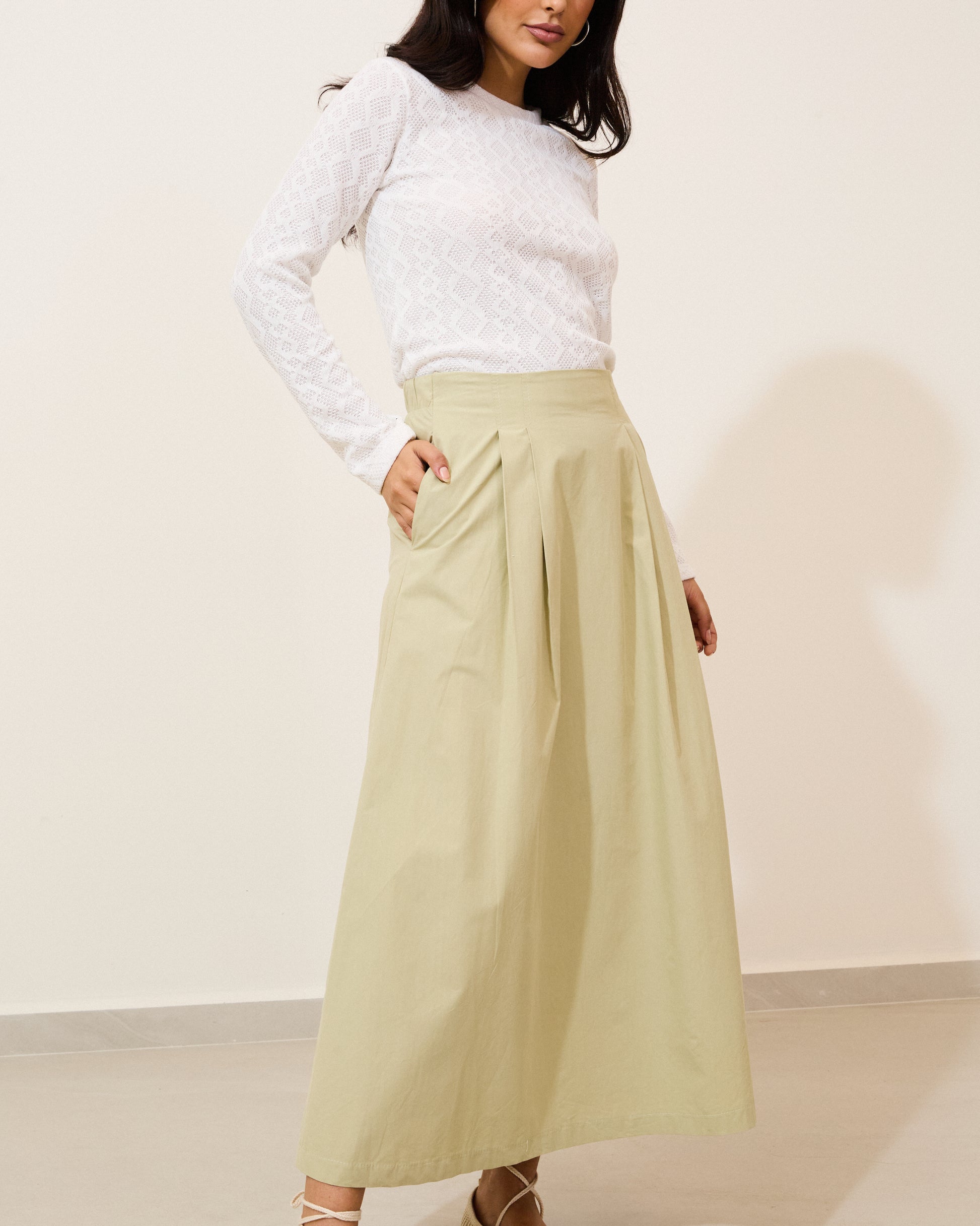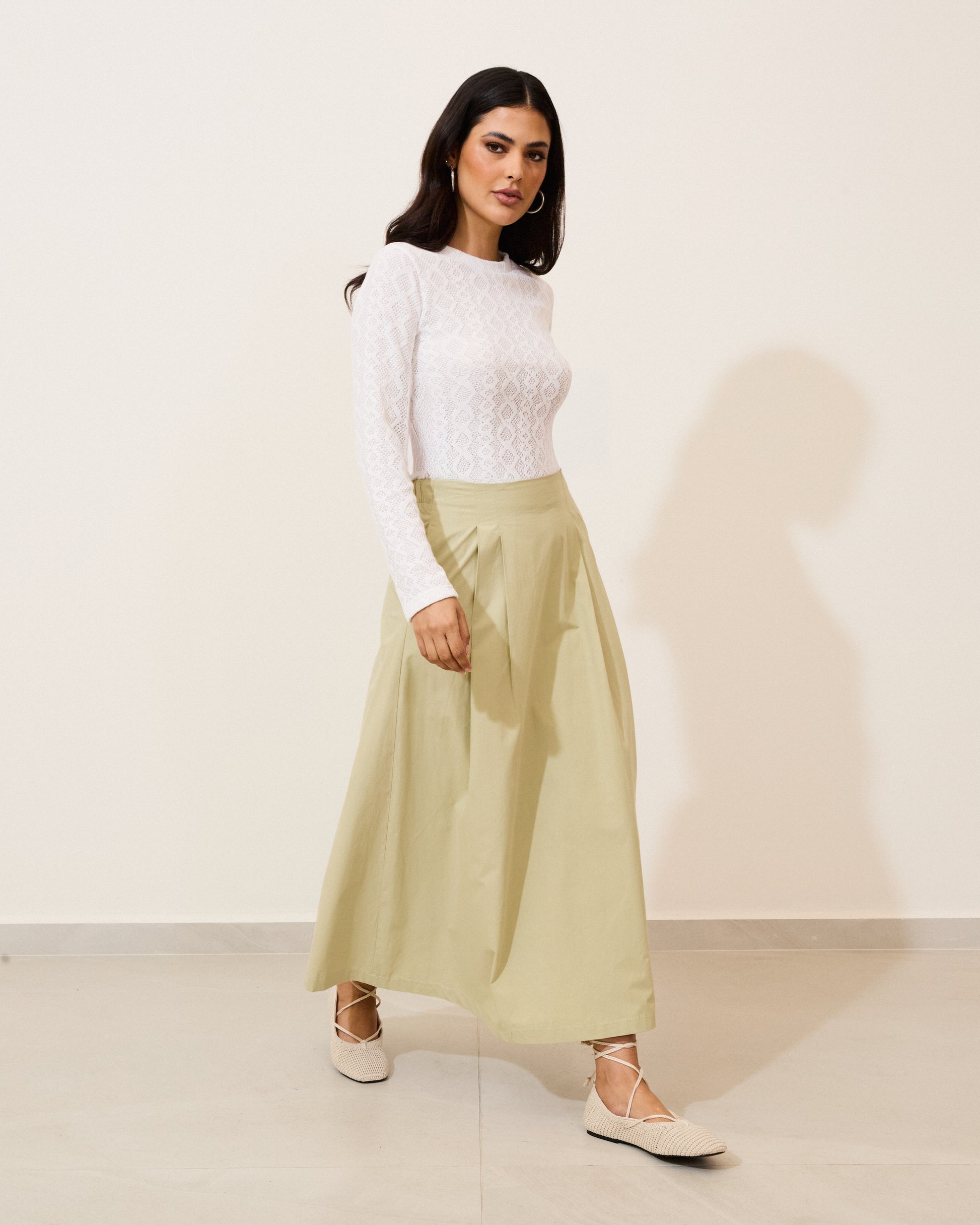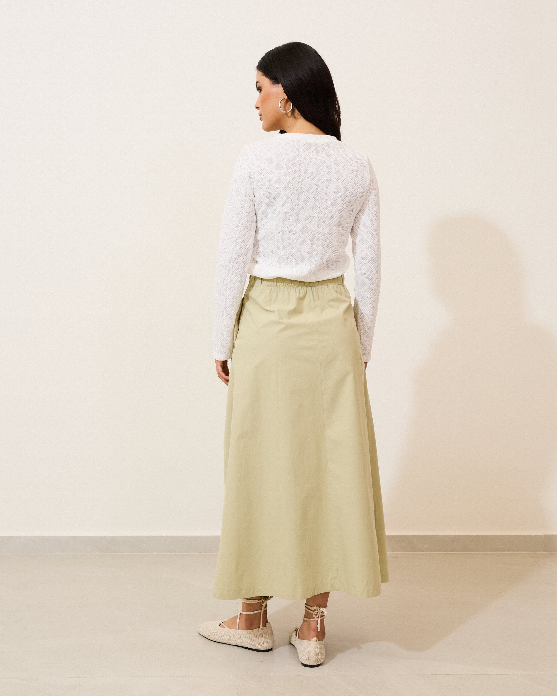 Blusa de tricot com manga longa, modelagem reta, confeccionada em malha texturizada de 97% poliéster e 3% elastano. Possui padronagem geométrica em pontos vazados e decote redondo. Ideal para ambientes de trabalho ou compromissos casuais em dias frescos.