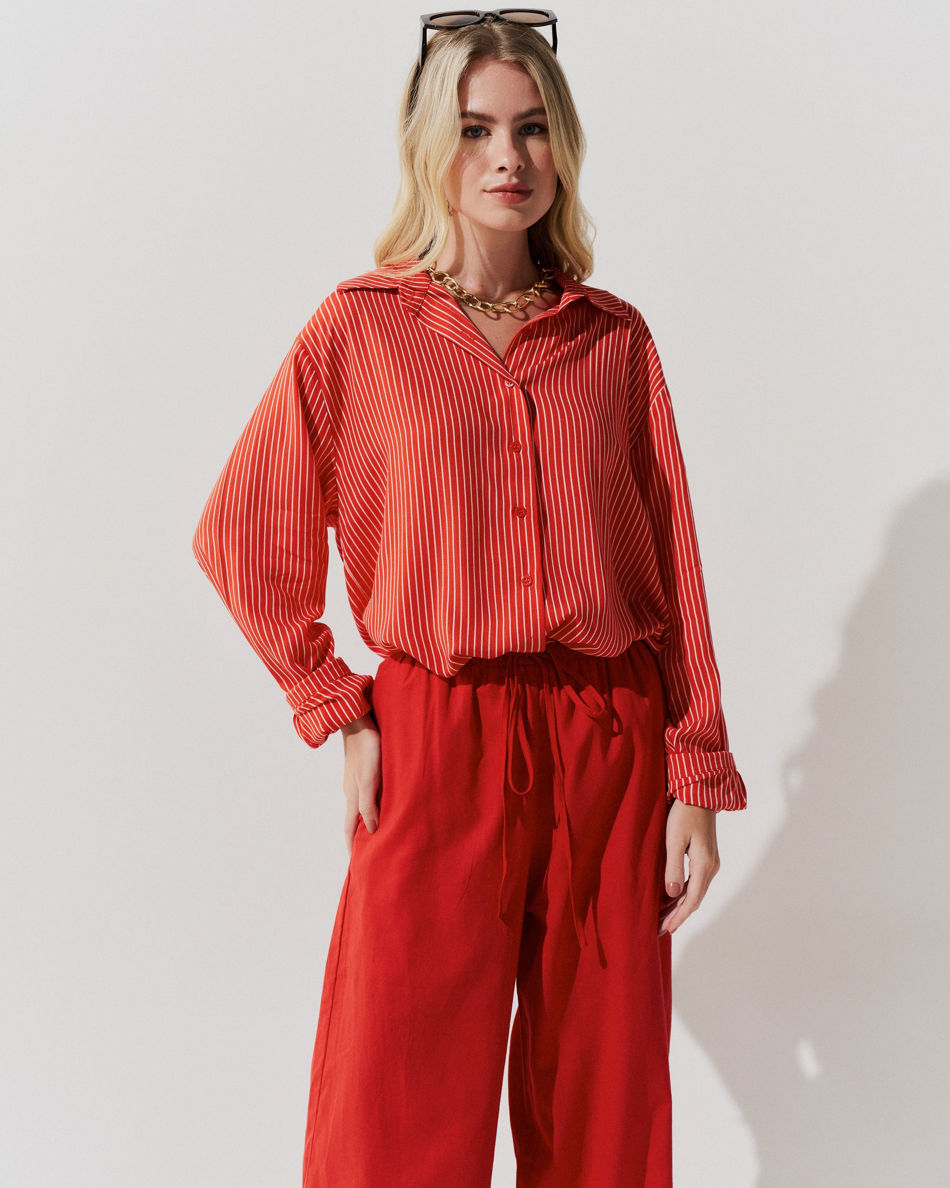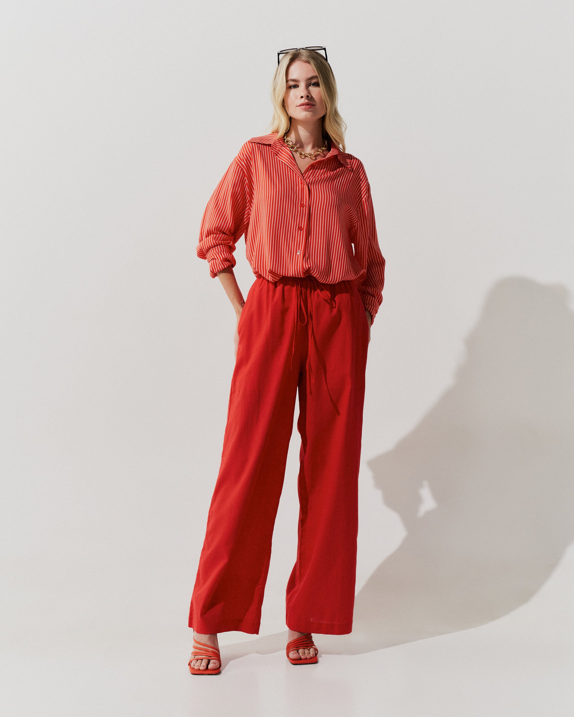 Calça Pantalona Cós Franzido VERMELHO