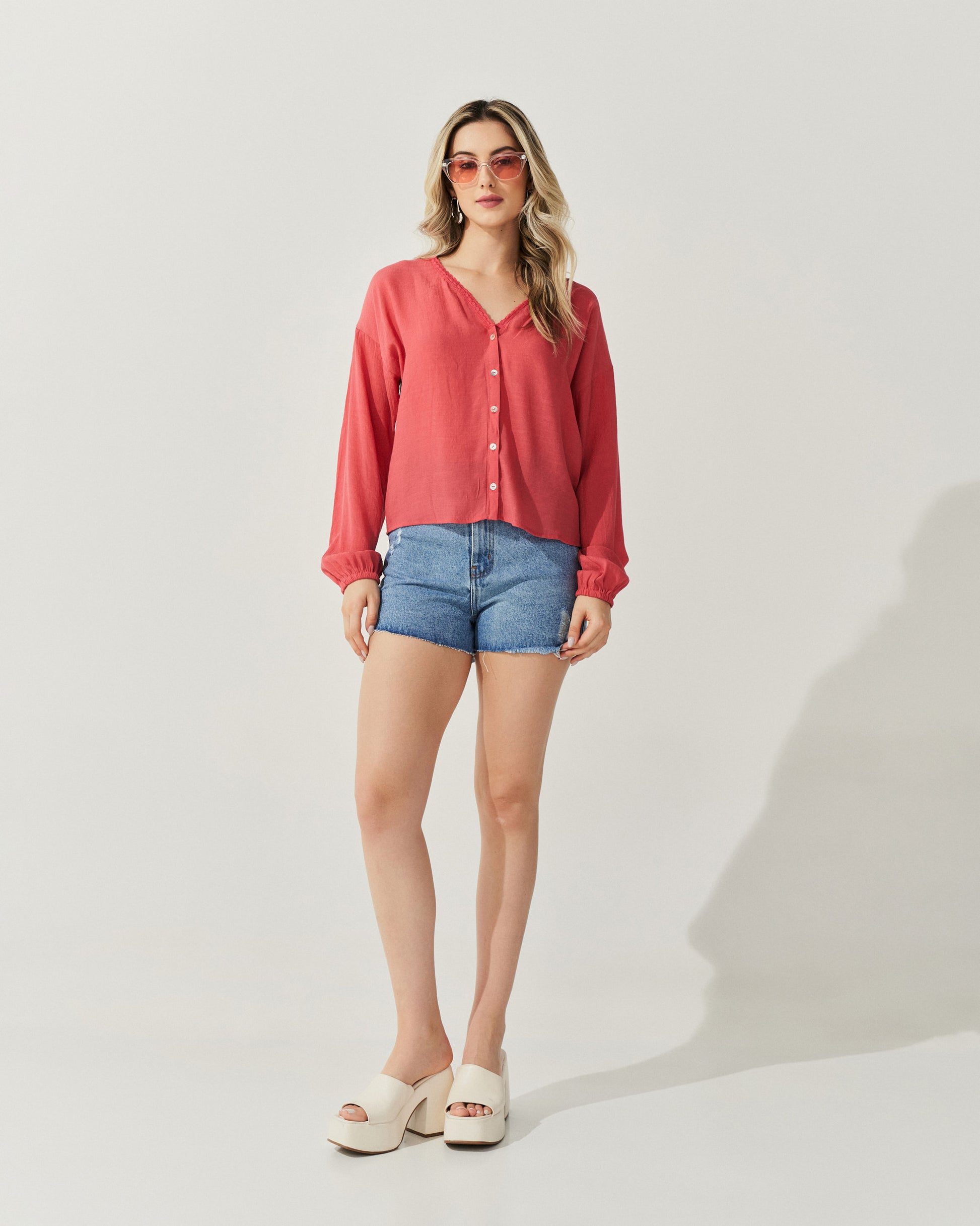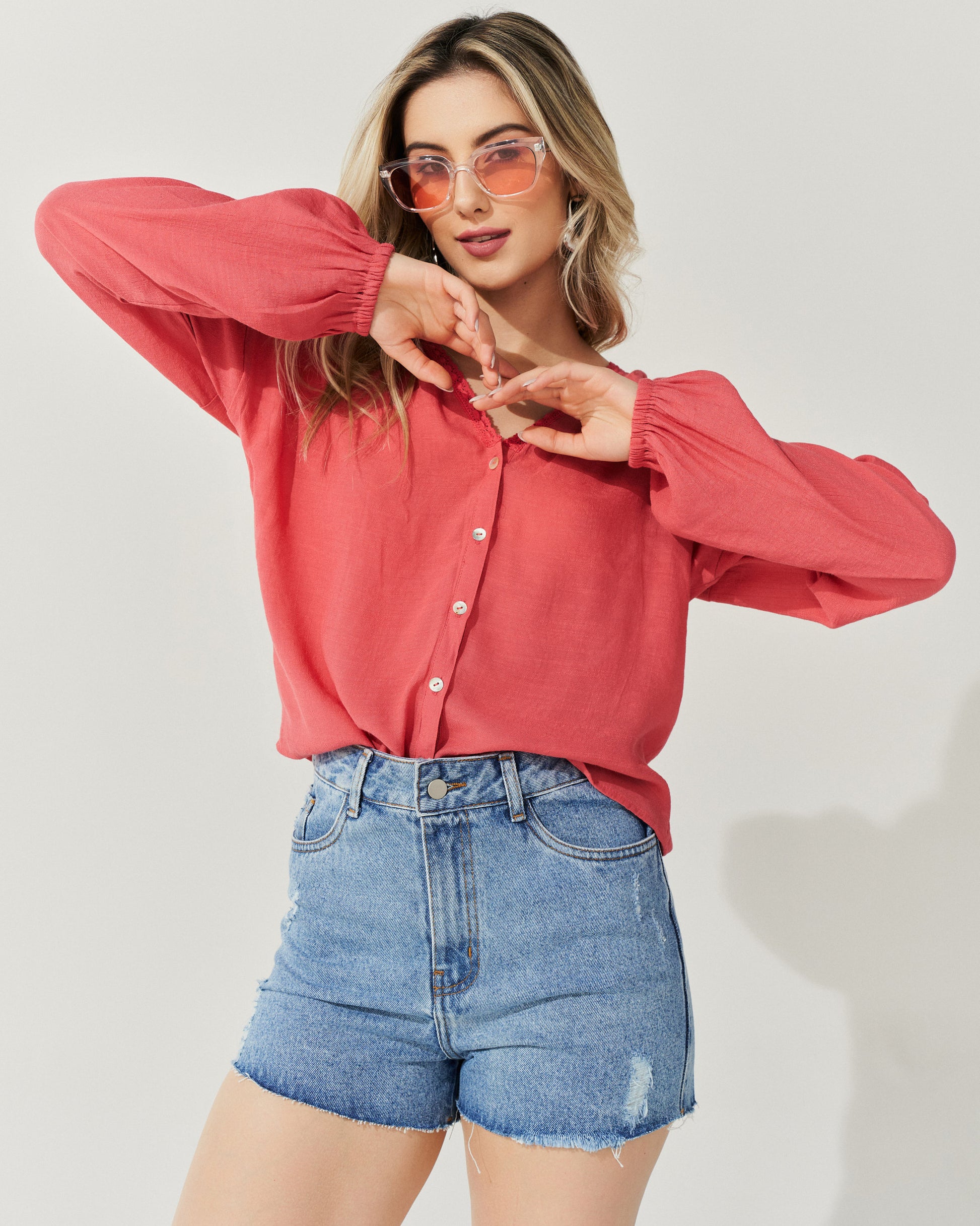 Shorts Cintura Alta com Puidos Jeans CLARO