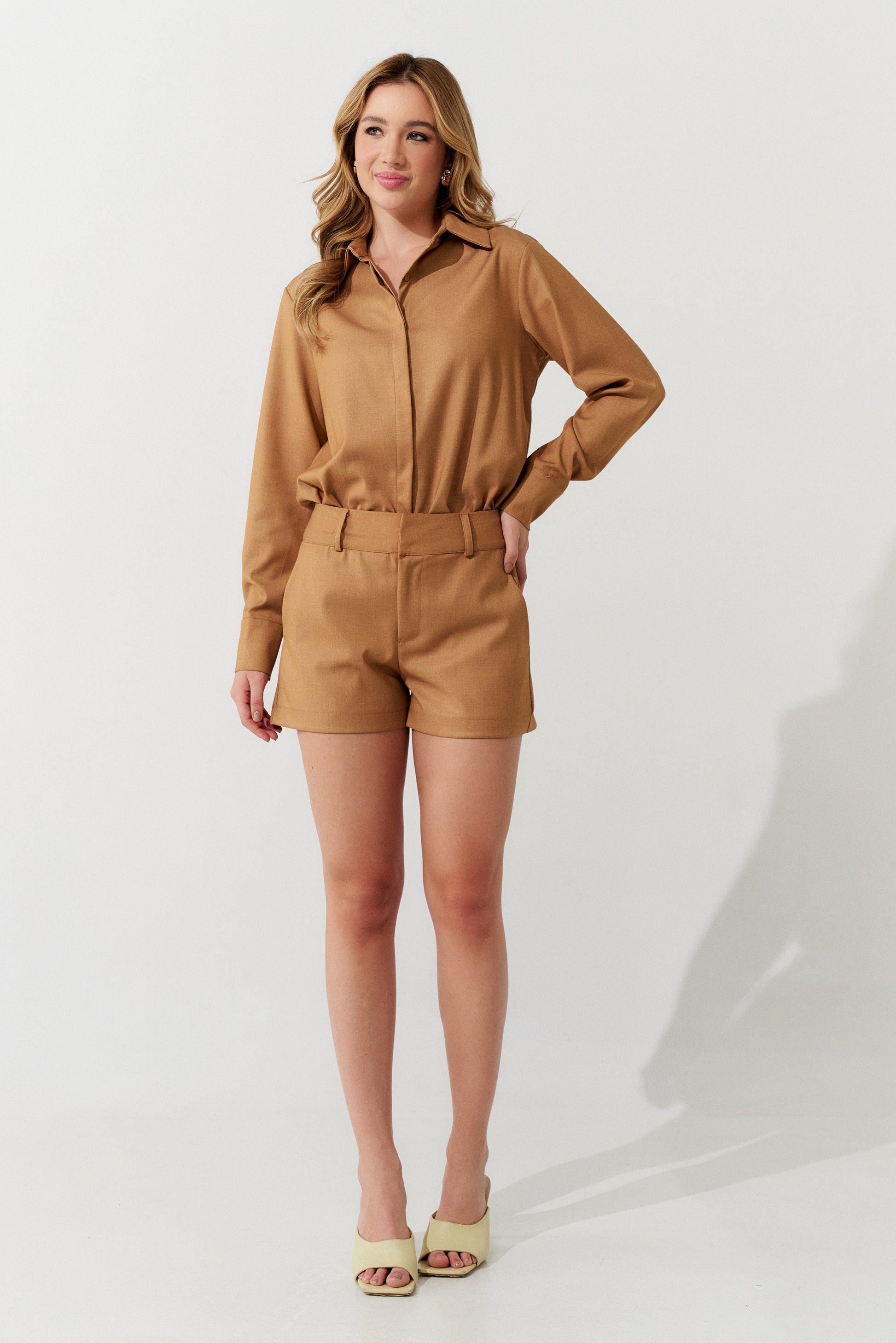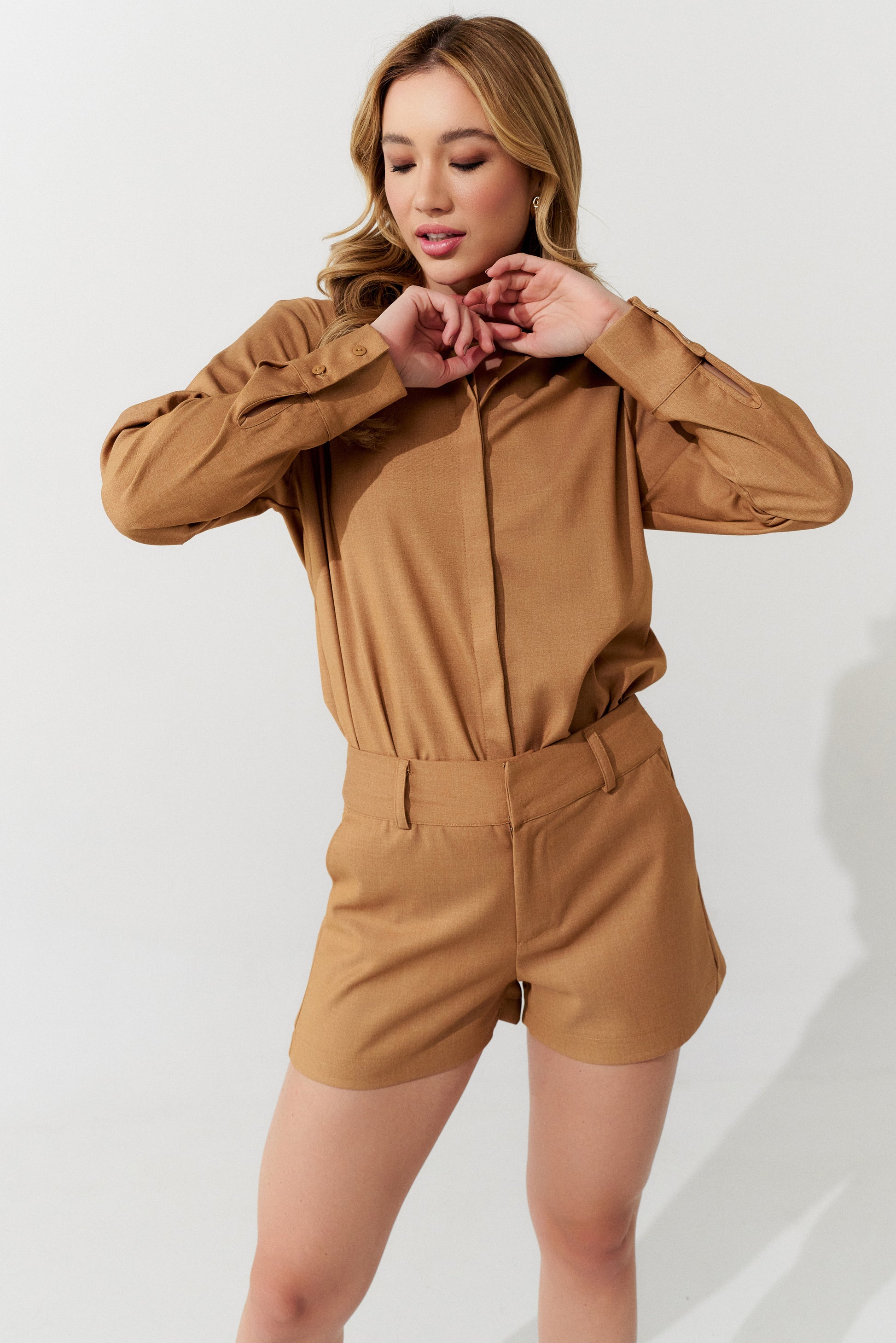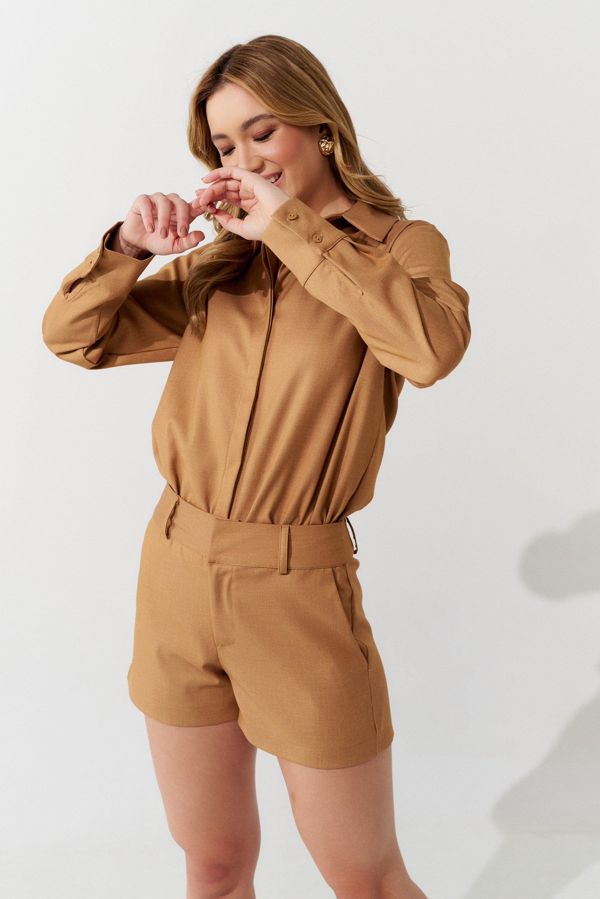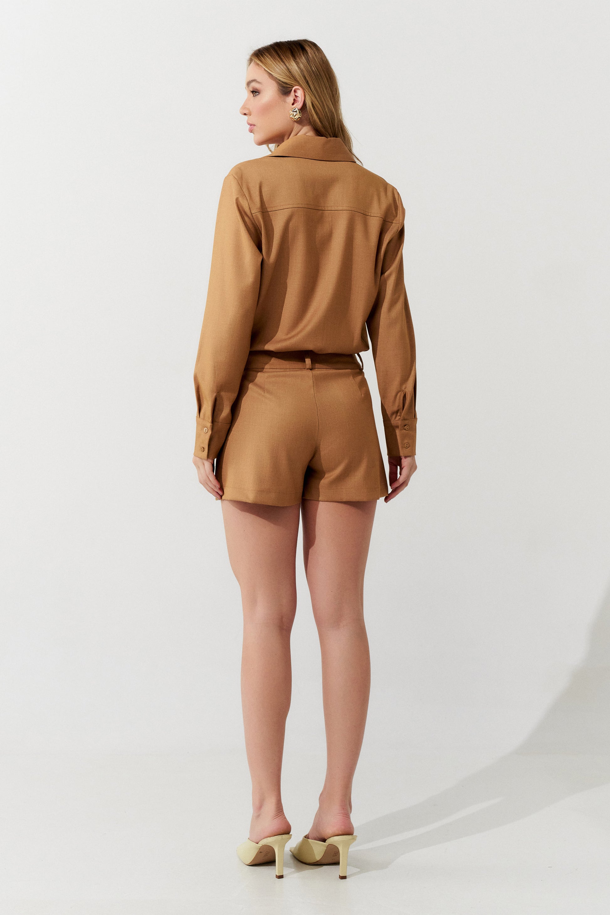 Macacão Curto Alfaiataria Bege