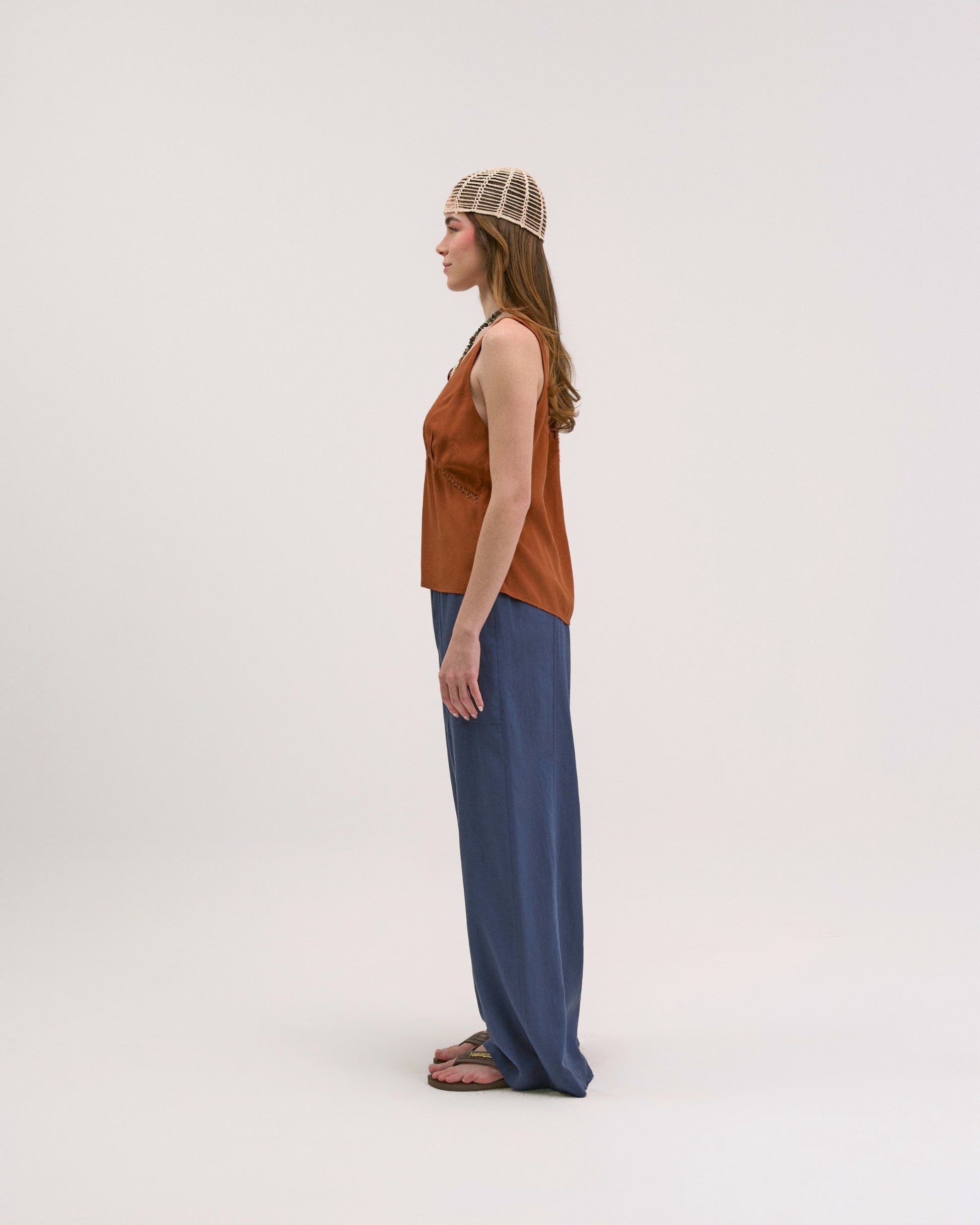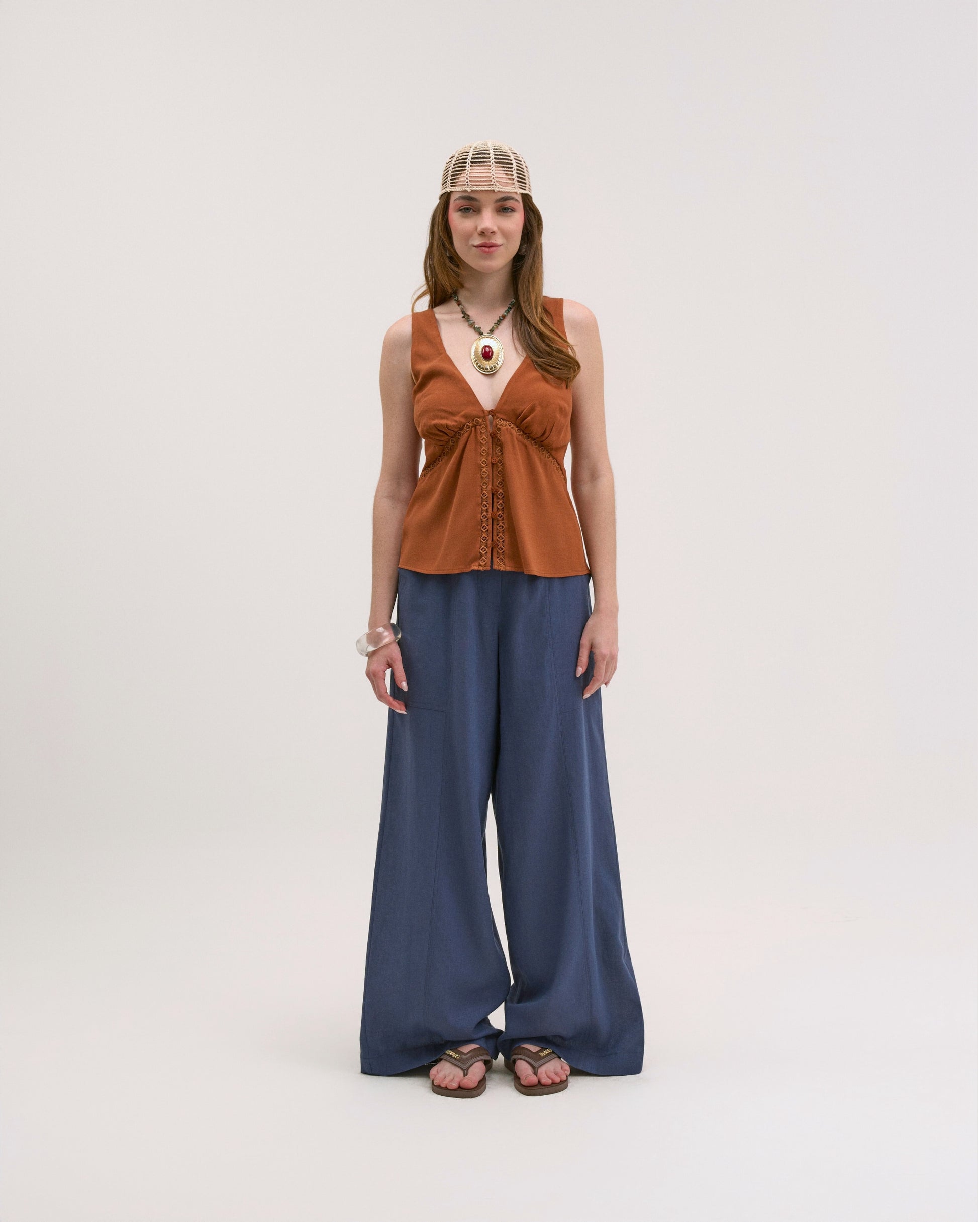 Blusa com acabamento limpo e construção leve. Confeccionada em viscose, oferece toque macio e caimento fluido, enquanto o forro interno garante melhor acabamento e conforto no uso. A estrutura acompanha o corpo de forma sutil, sem marcar, mantendo uma leitura elegante e atual. Peça versátil para a rotina, indicada para ambientes de trabalho, compromissos urbanos ou ocasiões casuais mais alinhadas.