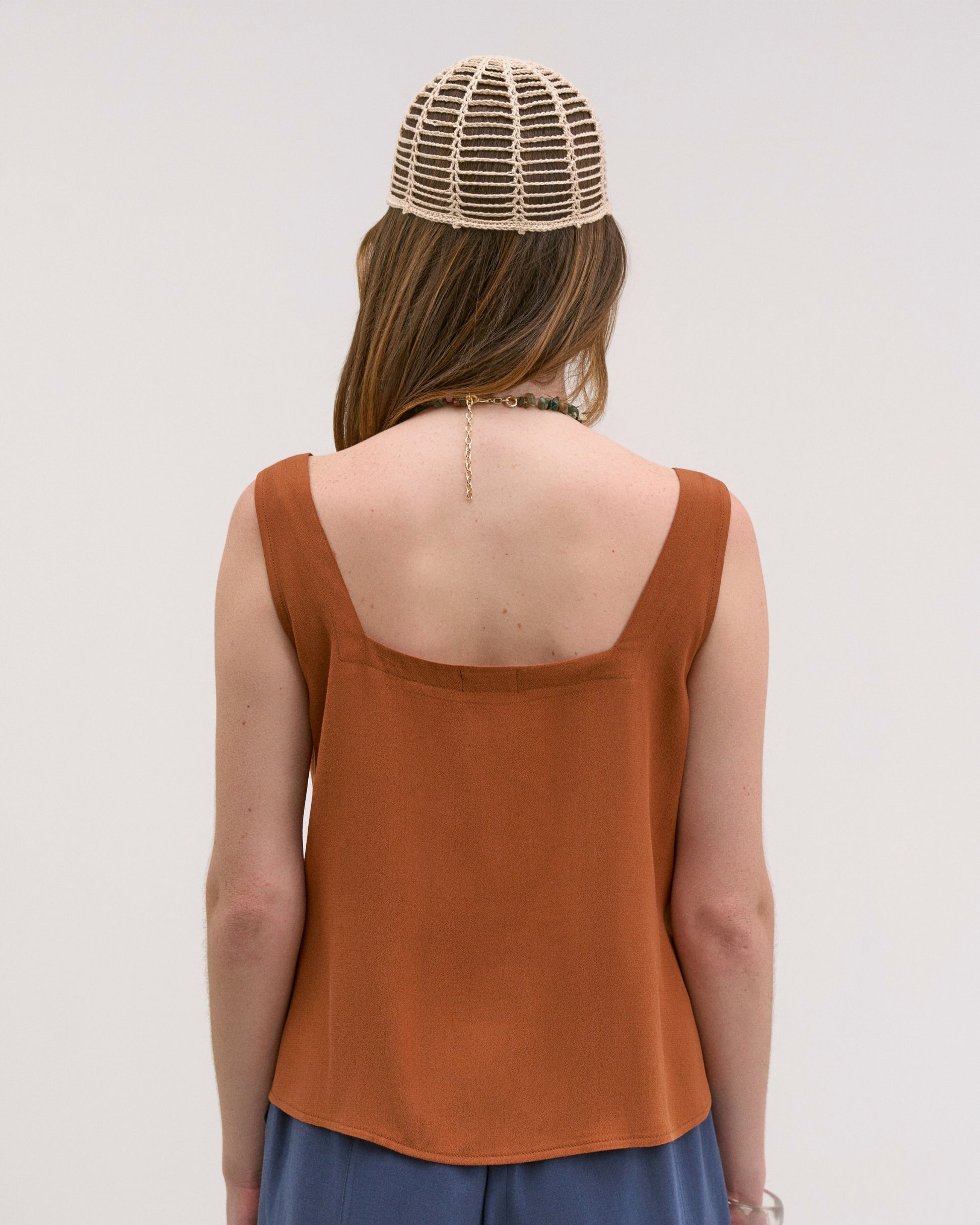 BLUSA DECOTE V COM BOTÃO FRENTE MARROM