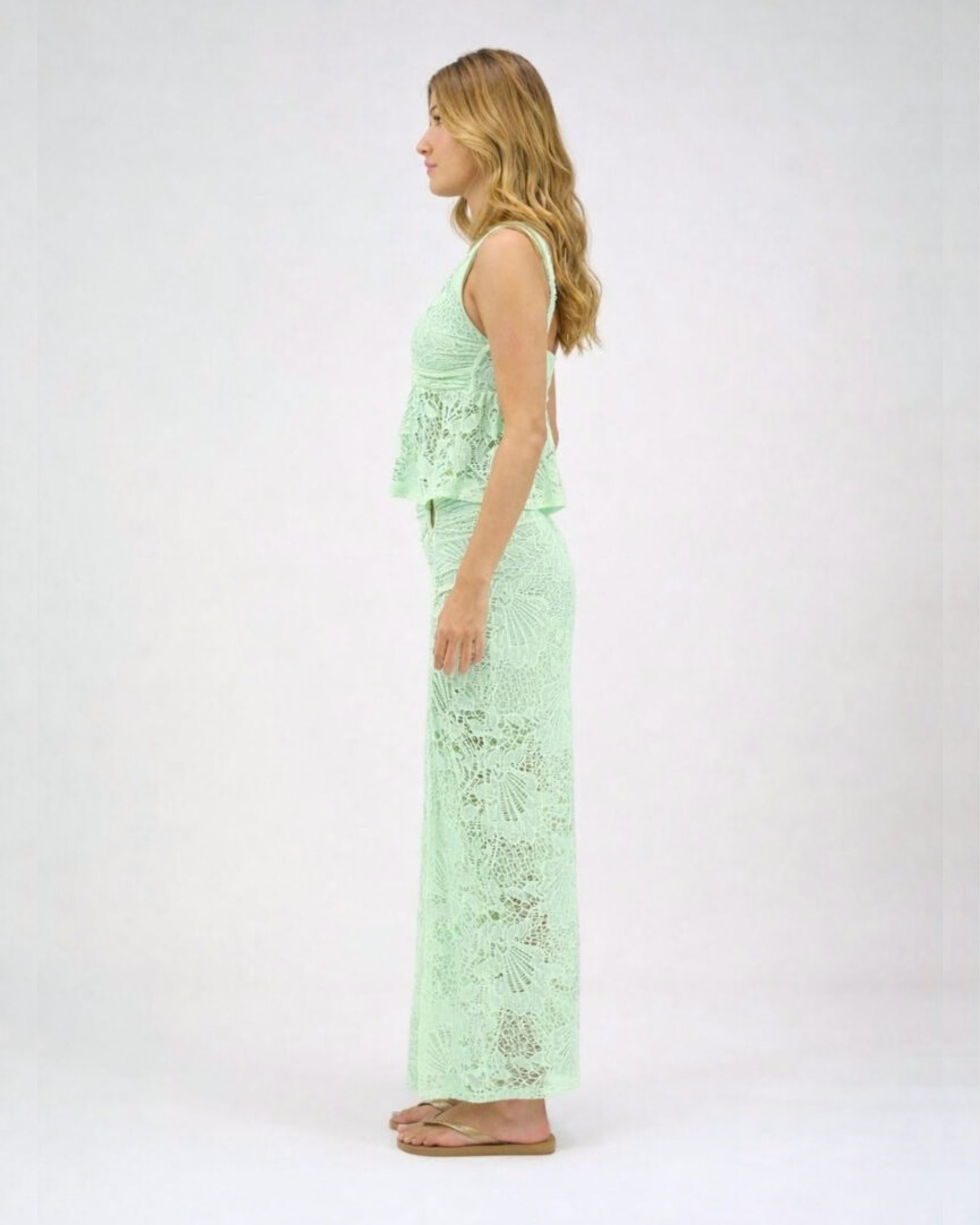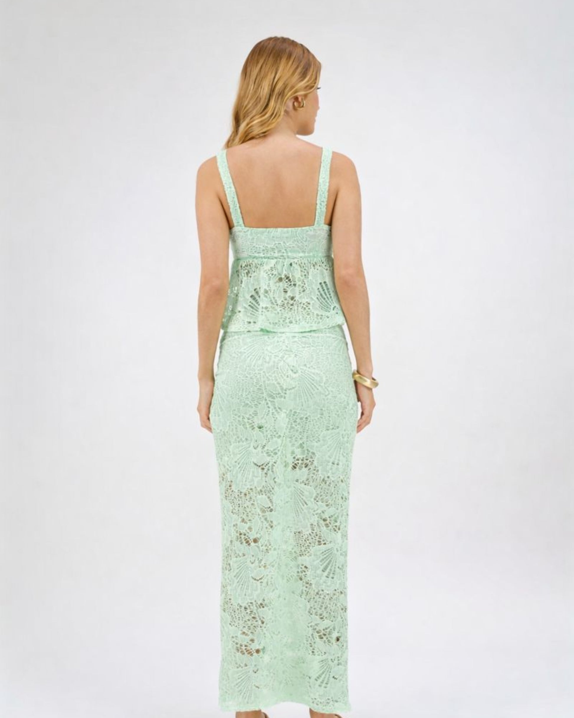 SAIA DE RENDA COM DETALHE CINTURA VERDE