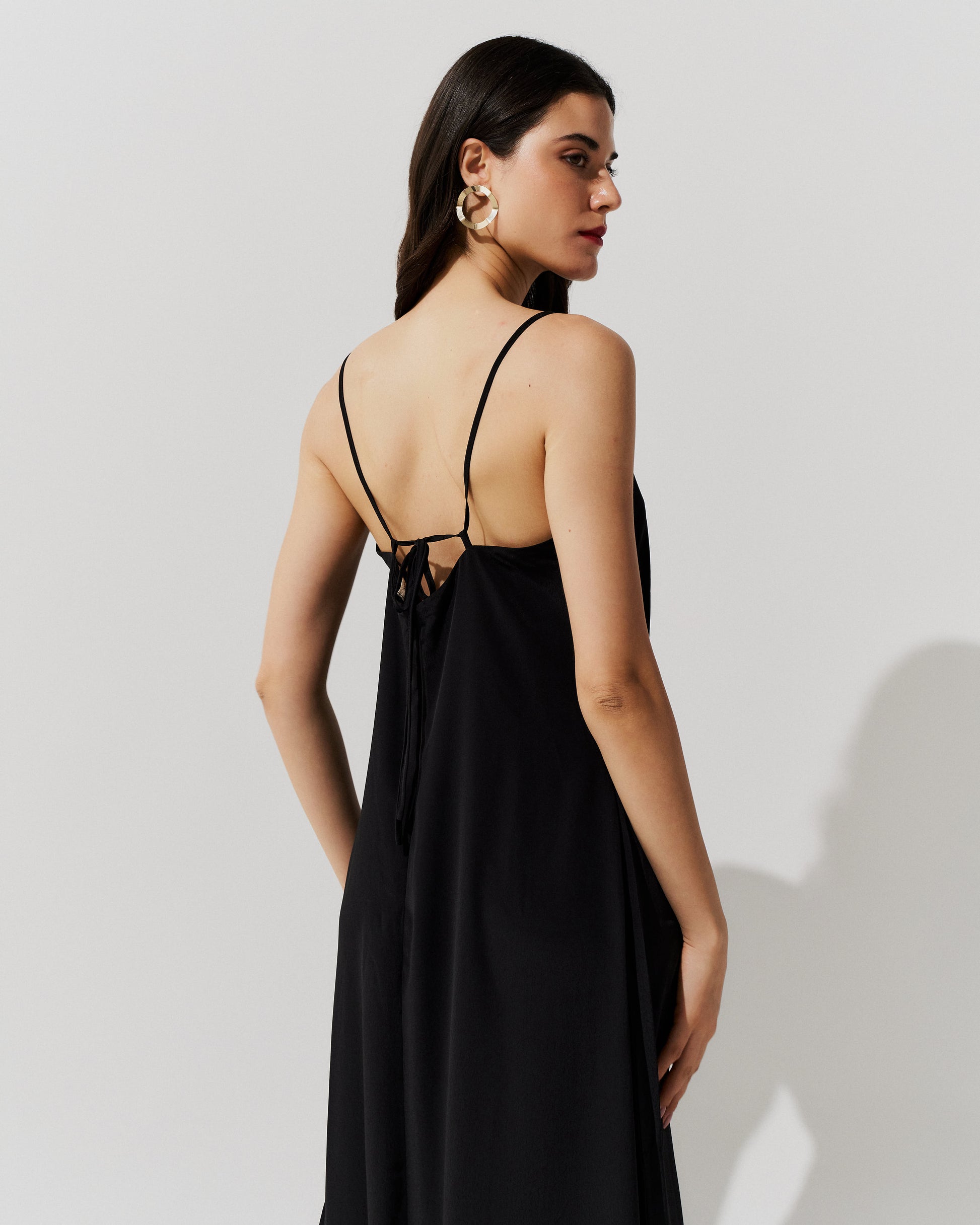 O detalhe das alças finas ajustáveis com amarração garante um ajuste impecável e um caimento perfeito, tornando-o ideal para ocasiões especiais onde o estilo e o conforto são indispensáveis. Este vestido é perfeito para eventos noturnos, casamentos ao ar livre, jantares elegantes ou festas sofisticadas.