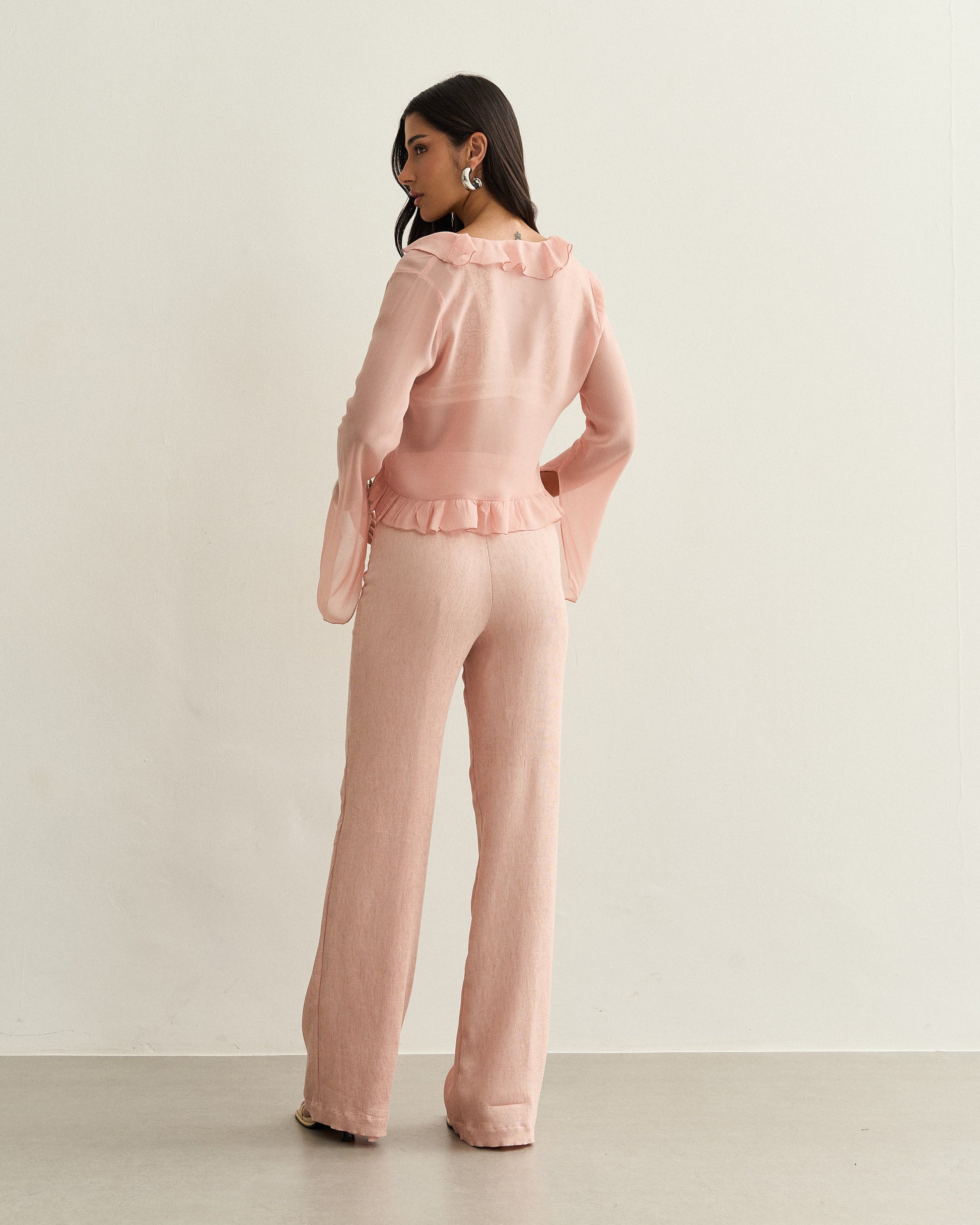 BLUSA MANGA LONGA COM BABADOS ROSA