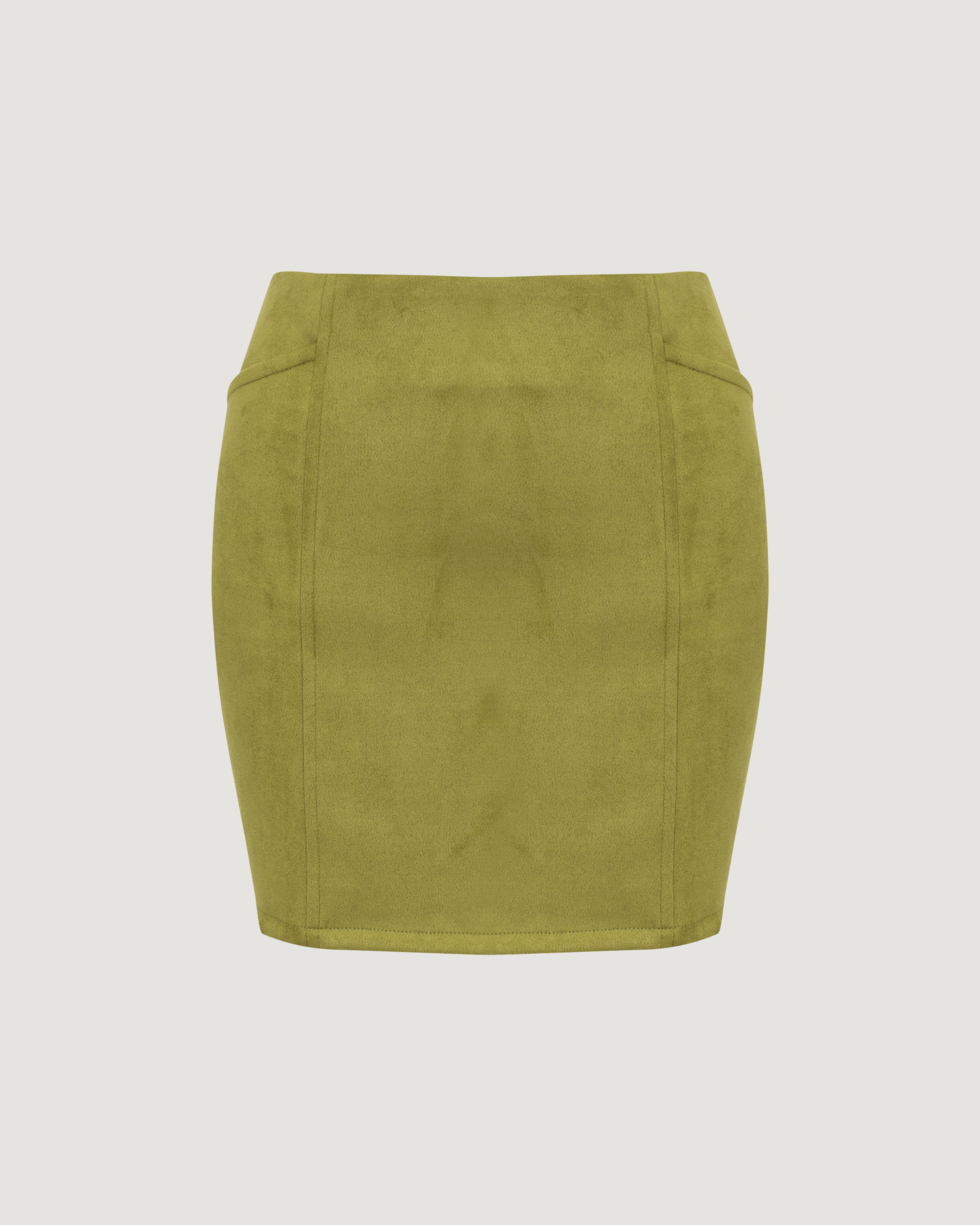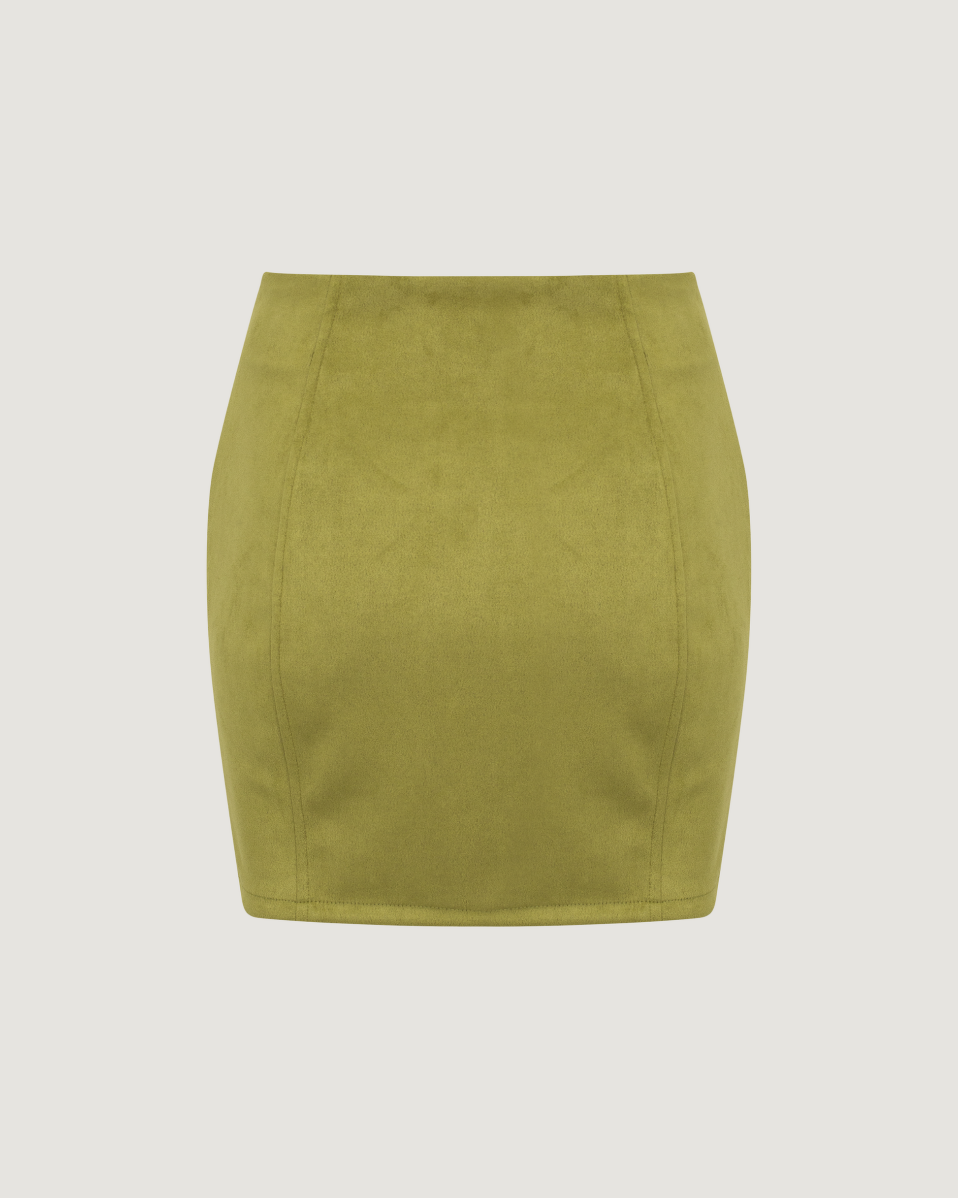 Mini Saia de Suéde desenvolvida em suede, com modelagem curta e caimento justo.